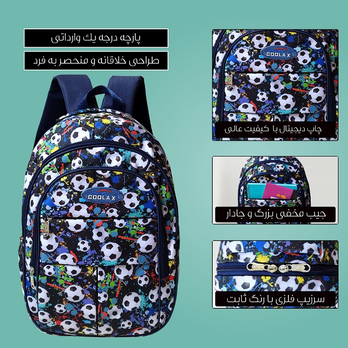 کوله پشتی مدرسه مهمترین لوازم تحریری است که می تواند احساس آرامش و راحتی را در طول روز برای دانش آموزان فراهم کند. کوله پشتی مدل Football با نهایت دقت و ظرافت طراحی و دوخته شده است، همچنین پارچه، یراق آلات و سایر متریال به کار رفته در این کیف از کیفیت ممتازی برخوردار هستند. این کیف دارای 4 جیب خارجی با فضای زیاد است که برای تفکیک اقلام مدرسه کاملا کارآمد می باشد. پشت این کیف به عرقگیر مجهز گردیده تا در روزهای گرم نیز همراه خوبی برای شما عزیزان باشد. دانش آموزان عزیز در مقاطع مختلف می توانند از این کیف استفاده کنند.